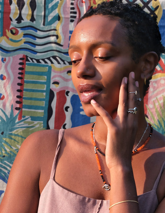 Almond Eye Beaded and Chain Necklace